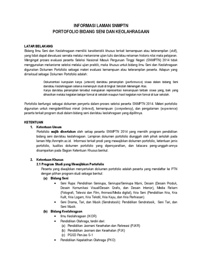 Petunjuk Umum Portofolio Bidang Seni Dan Olahraga Snmptn Sbmptn