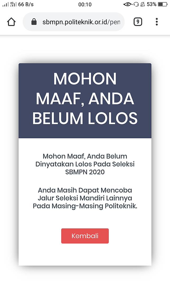 Pengumuman Hasil Seleksi Sbmpn Politeknik Negeri Tahun 2020 2021