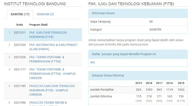 Daya Tampung 20 Prodi Itb Pada Sbmptn 2020 Berikut Peminat 2019