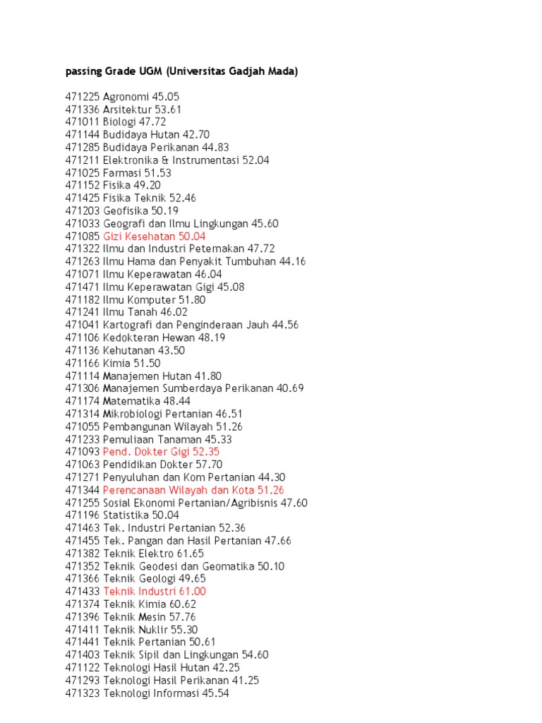 Passing Grade Ugm Universitas Gadjah Mada 2019 2020
