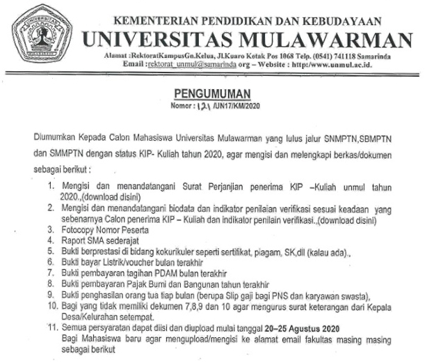 Informasi Penerimaan Mahasiswa Baru Universitas Mulawarman Ta