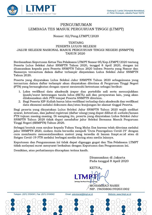 Snmptn Ac Id Pengumuman Hasil Seleksi Snmptn 2020 2021
