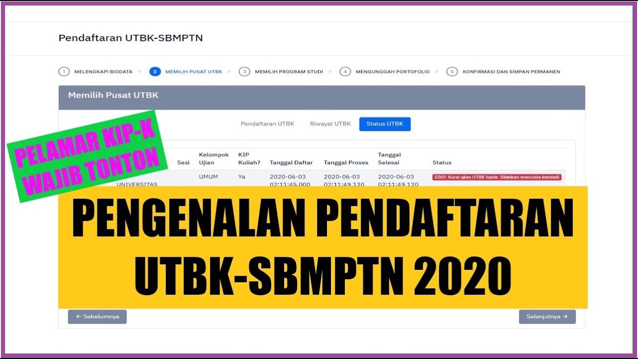 Pengenalan Pendaftaran Utbk Sbmptn 2020 Youtube