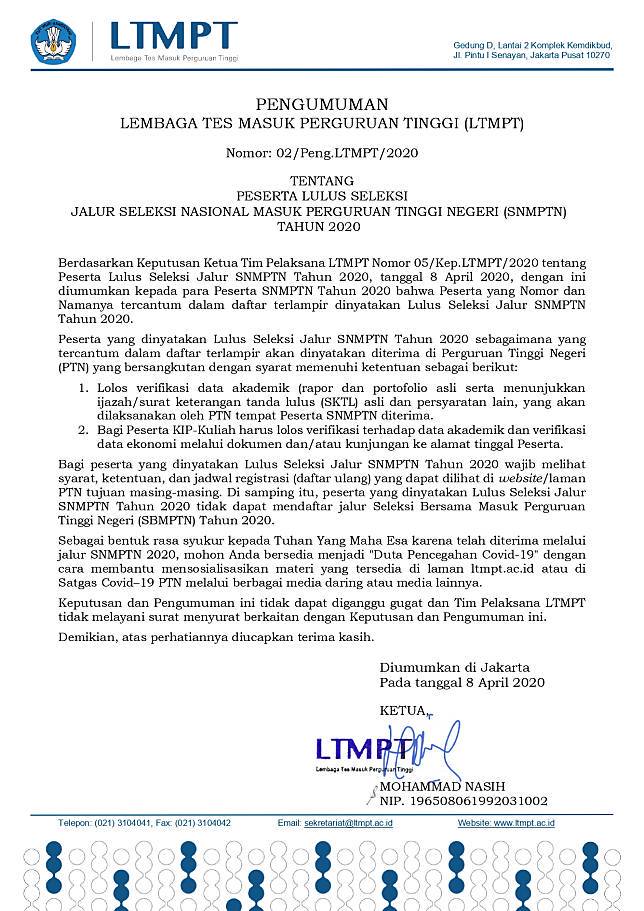 Cek Pengumuman Snmptn 2020 Hari Ini Pukul 13 00 Wib Di Portal